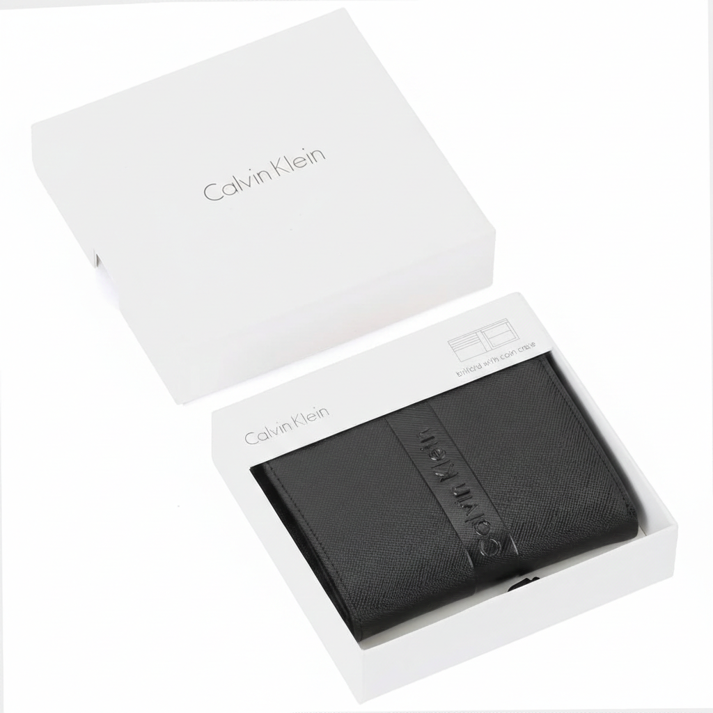 Wallet-features Card organization, Compact design, Saffiano textured leather finish, Front flap design, Scratch resistant, Gift Box Included, Calvin Klein, Mirror original