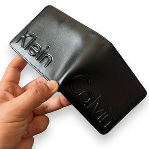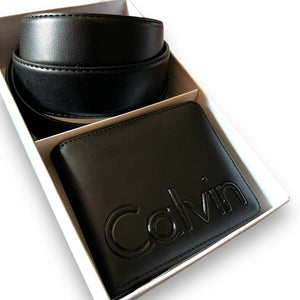 طقم هدايا رجالي أصلي من الجلد الأسود من كالفن كلاين - محفظة وحزام بنقش المونوغرام