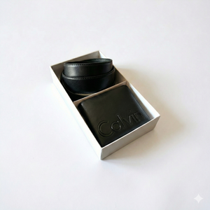 أضف لمسة مميزة إلى إطلالتك مع طقم هدايا كالفن كلاين الرجالي الأصلي المكون من قطعتين باللون الأسود الكلاسيكي. تتميز هذه المجموعة الفاخرة بمحفظة ثنائية الطي وحزام جلدي متناسق، كلاهما مصنوع بدقة متناهية من جلد طبيعي عالي الجودة. تزدان المحفظة بنقشة شعار CK الأنيقة، بينما يتميز الحزام بإبزيم أنيق بلون معدني داكن محفور عليه شعار كالفن كلاين. يُعد هذا الطقم مثاليًا للمناسبات الرسمية وغير الرسمية، فهو يجمع بين الأناقة والفخامة والمتانة الاستثنائية. يأتي الطقم في علبة هدايا فاخرة تحمل العلامة التجارية، وهو الخيار الأمثل للرجل العصري أو هدية مثالية لشخص عزيز.