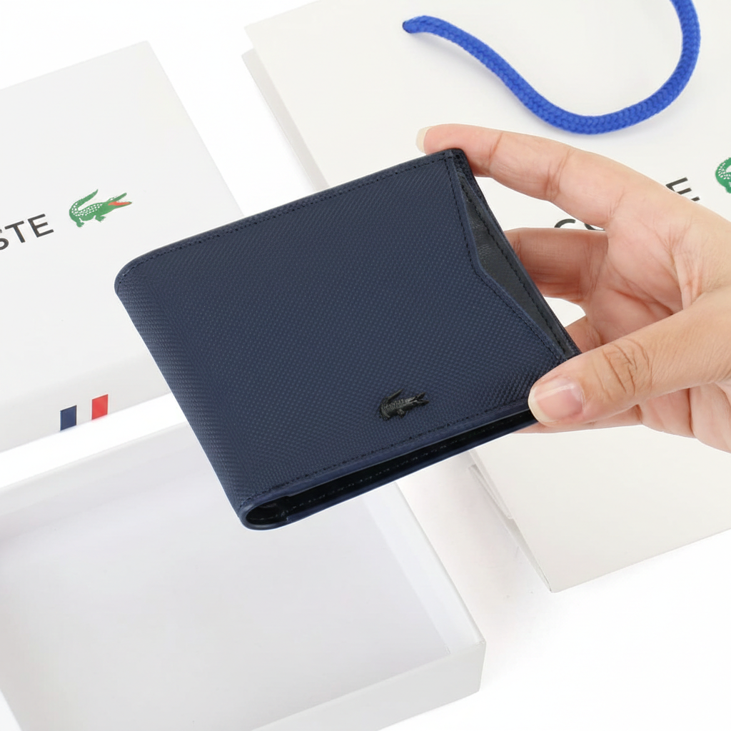 | Wallet-features | Card organization, Compact design, Durable grained leather finish, Removable interior card holder, Black Lacoste crocodile logo, Ultra-slim bifold design, Gift Box Included, Lacoste, Mirror original |