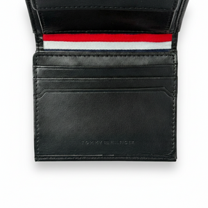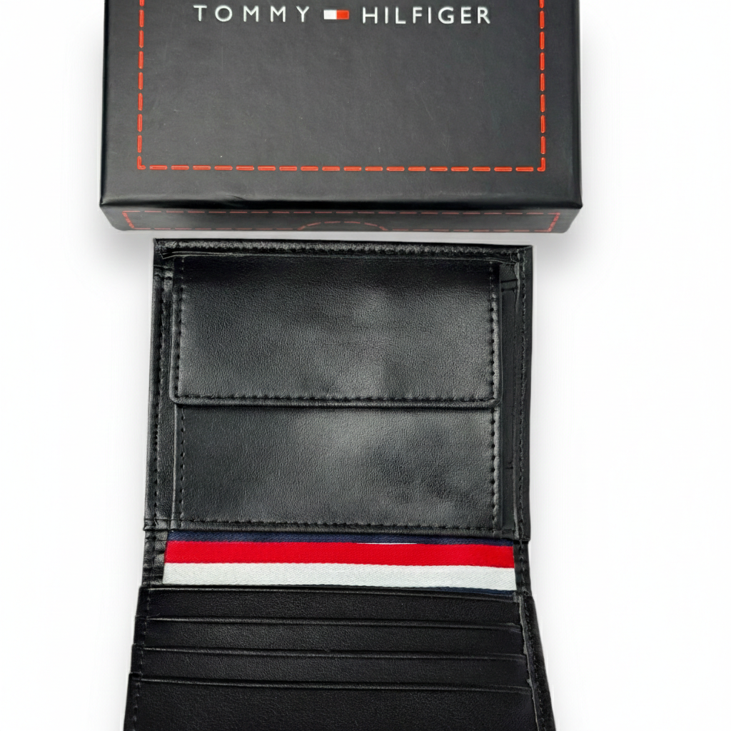 | Wallet-features | Card organization, Compact design, Crafted from high-grade pebbled genuine leather, providing a soft tactile feel and enhanced resistance to daily wear and tear., Features a unique vertical engraved "TOMMY HILFIGER" logo alongside the iconic metal flag, creating a fresh and contemporary designer look., The interior includes a dedicated coin compartment with a secure button-down flap, keeping your loose change safe and organized., Presented in a premium Tommy Hilfiger gift box with a matching shopping bag, making it a sophisticated choice for upscale gifting., Designed with an efficient layout that includes multiple card slots and a wide bill compartment for easy access to all your essentials. |
