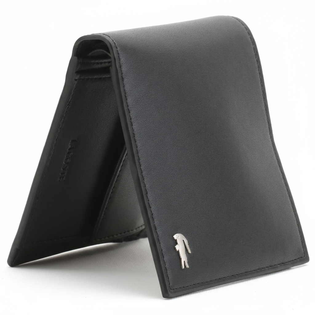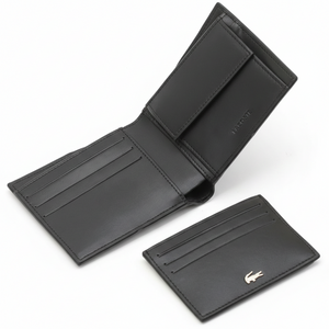 طقم هدايا من لاكوست للرجال: محفظة جلدية سوداء وحامل بطاقات متناسق