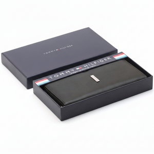 | Wallet-features | Card organization, Compact design, Made from superior-grade black genuine leather, providing a soft touch, professional matte finish, and long-lasting durability for daily use., The elongated "Valet" style offers ample space to securely hold your smartphone, paper currency, and up to 12+ cards in one organized accessory., Showcases a premium rectangular metal logo and the iconic signature flag detail, making it a recognizable statement of luxury and style., Comes elegantly packaged in the signature Tommy Hilfiger navy gift box, perfect for gifting to someone special or treating yourself to luxury. |