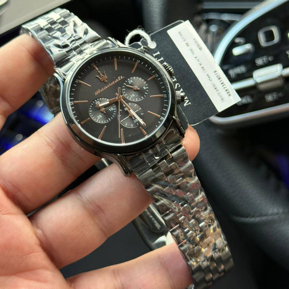 Maserati Epoca R8873618019 Full Black Jubilee Bracelet Rose Gold Accents Watch