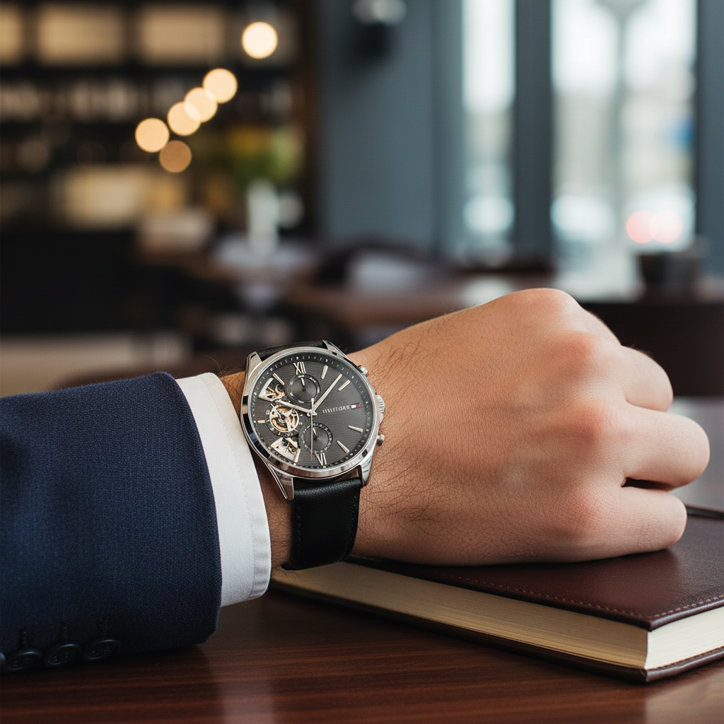 A refined multi-function timepiece crafted for men who appreciate elegance with a modern mechanical touch.