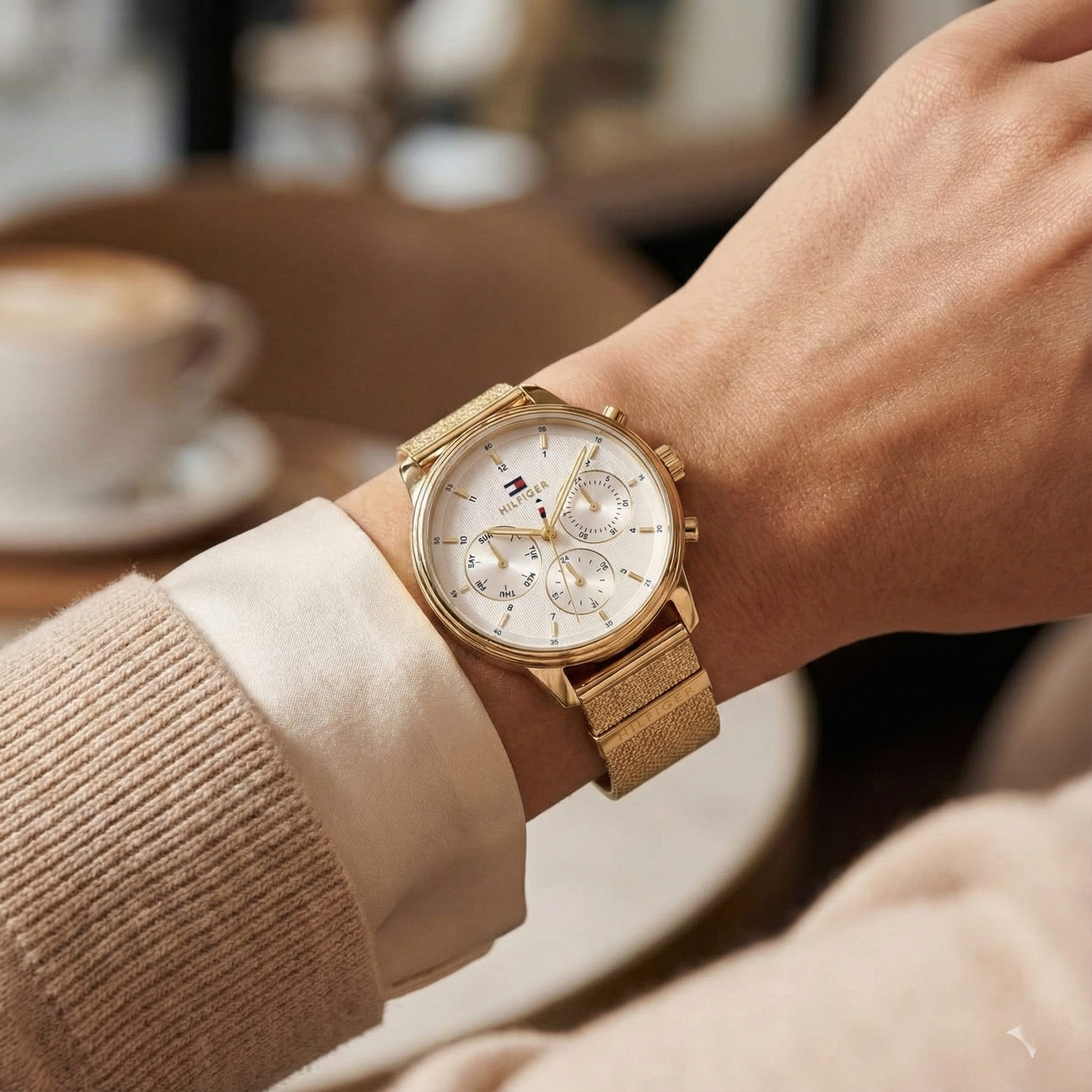 Tommy Hilfiger Men's Multi-Function Watch – Model 1782302 – Gold Mesh Strap