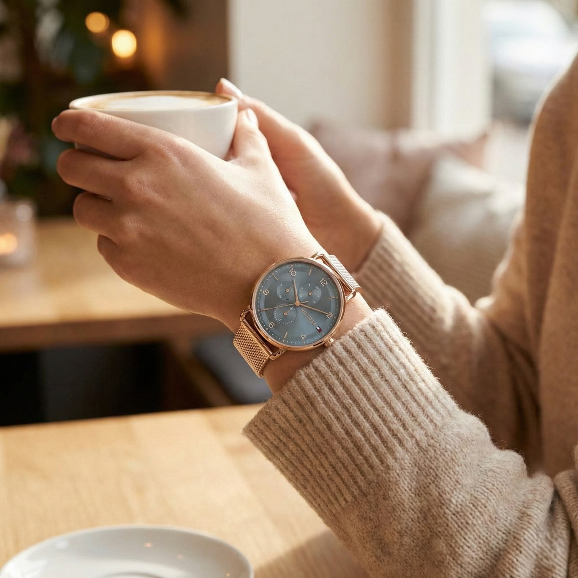 Tommy Hilfiger 1782664 Men’s Multi-Function Watch – Rose Gold Mesh Bracelet & Blue-Grey Dial