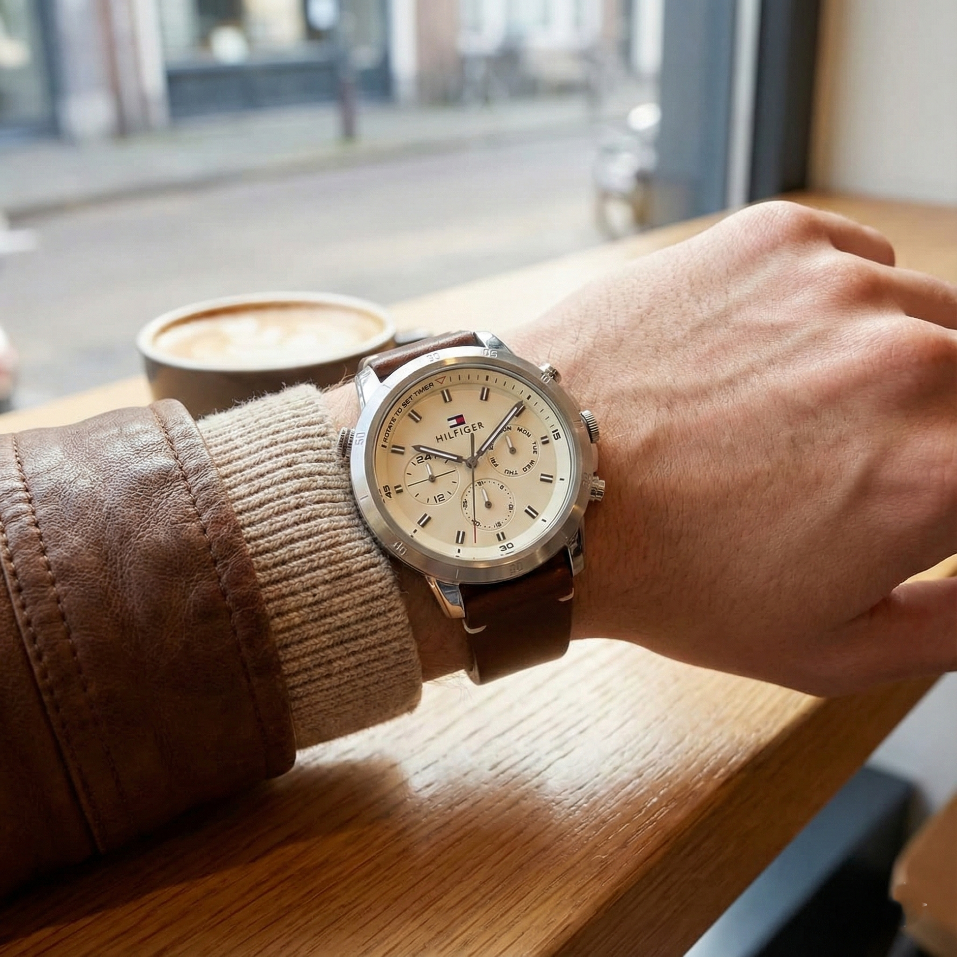 Tommy Hilfiger 1792102 Men’s Multi-Function Watch – Beige Dial & Brown Leather Strap