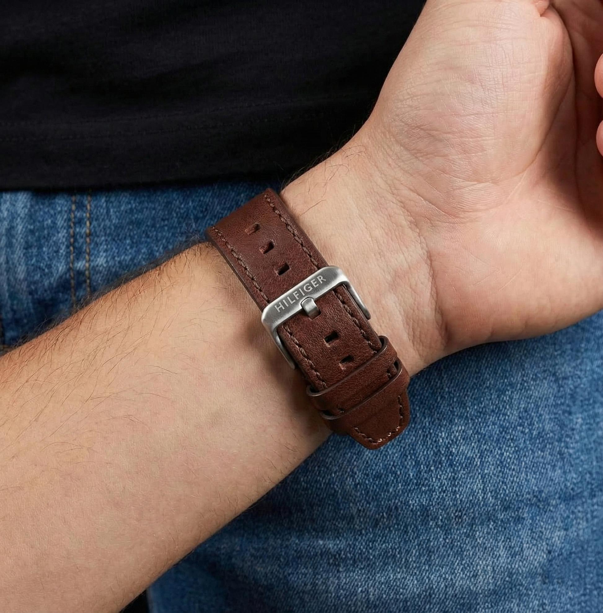 A modern yet classic Hilfiger design — stylish blue dial, premium leather, and reliable
