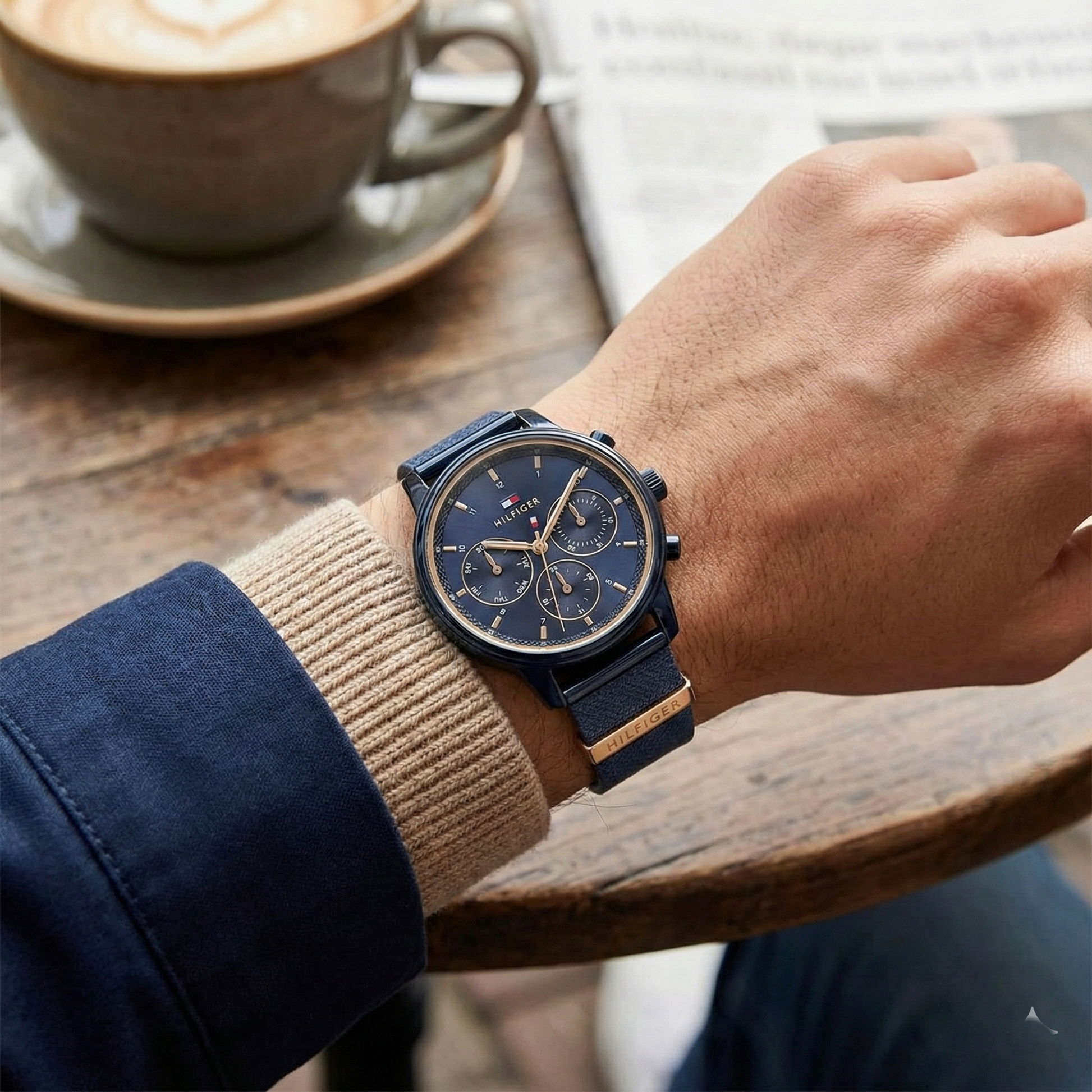 • Deep navy-blue dial with gold-tone accents for a luxurious aesthetic